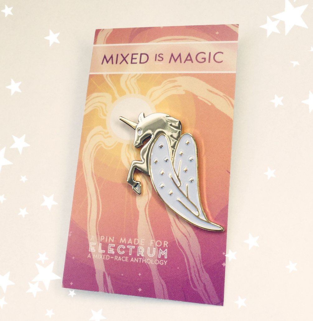 The Alloy Anthology's first book ELECTRUM comes with a commemorative pin as well! To fit with our theme of Electrum, the alloy formed by mixing gold and silver, this pin features the pegasus from our book's cover in unique two-tone gold and silver plating... the wings and horn are gold, and the body is silver!