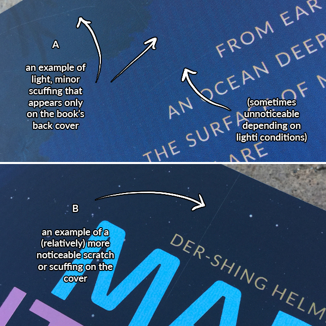 • D: Hardcover with noticeable scuffing ($52)- SOLD OUT: These books have been discounted ~20%, as There may be other very slight surface scratches as well. Books may be either shrink-wrapped or bare (but re-wrapped by me in a protective bag for shipping), with the same amount of damage regardless of wrap. Standing 3 ft away, I'm not able to see the damages, it is more of an up-close thing.