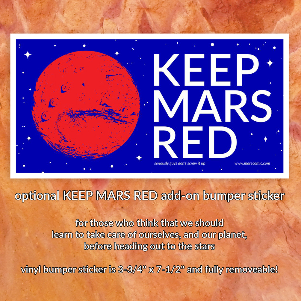 - Keep Mars Red bumper sticker ($4): removable vinyl bumper sticker that goes great on a car, a binder, a laptop, wherever you want. And best of all, it's removable!