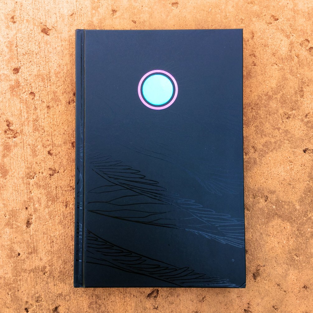 The Mare Internum LE Hardcover Pack comes with a shrinkwrapped Hardcover copy of Mare Internum, featuring a subtle black-on-black spotgloss, two-color foil on the cover and spine, blue margins, an O-wrap featuring the wraparound art from the softcover, and 296 pages of full-color comics.